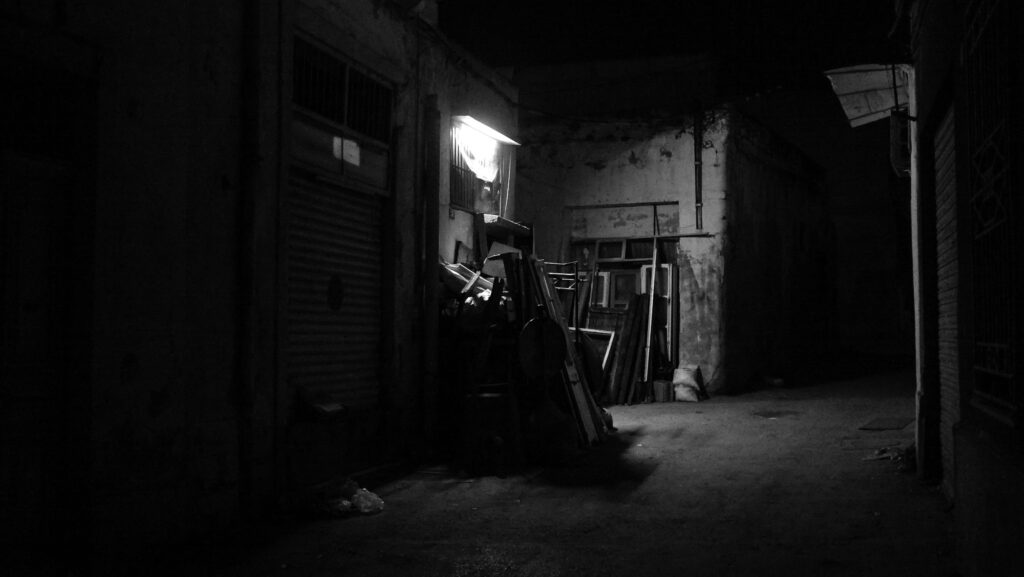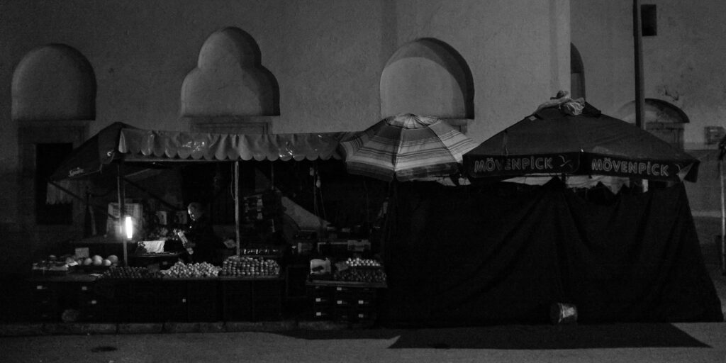 A NIGHT WITH DIZZY immerses us in the twists and turns of an imaginary city, inspired by the aesthetics of documentary cinema and the panoramic format. In my ears, Dizzy Gillespie’s A Night in Tunisia sounds like a chimerical note linking these urban wanderings.