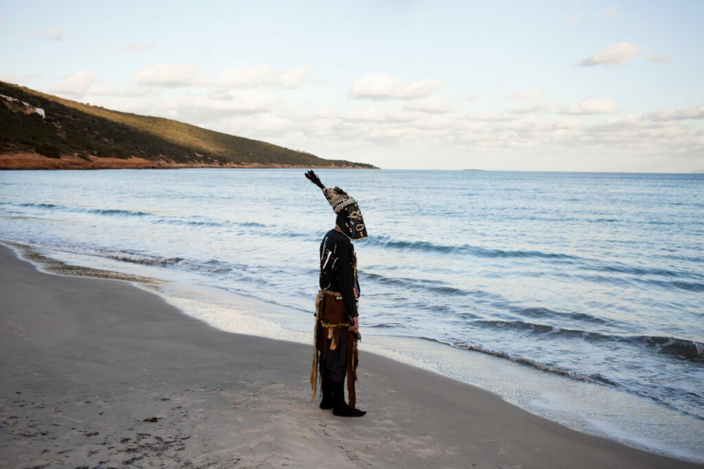 “Through the emblematic figure of Bou Saadiya — folkloric dancer, street musician, half-trickster, half-sorcerer, and guardian of the Stambali cult — the photographer retraces, like a solitary traveler, the odyssey of a father in search of his daughter, stolen and sold into slavery.