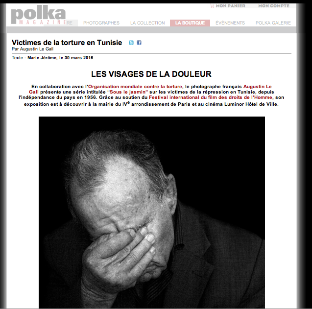 L’exposition Sous le jasmin , histoires d’une répression – un projet de l’OMCT et du photographe Augustin Le Gall – vient illustrer cet héritage caché, montrer des visages, révéler les traces, marquant ainsi, sur le papier, l’empreinte de ces histoires qui restent dans les corps et les esprits.